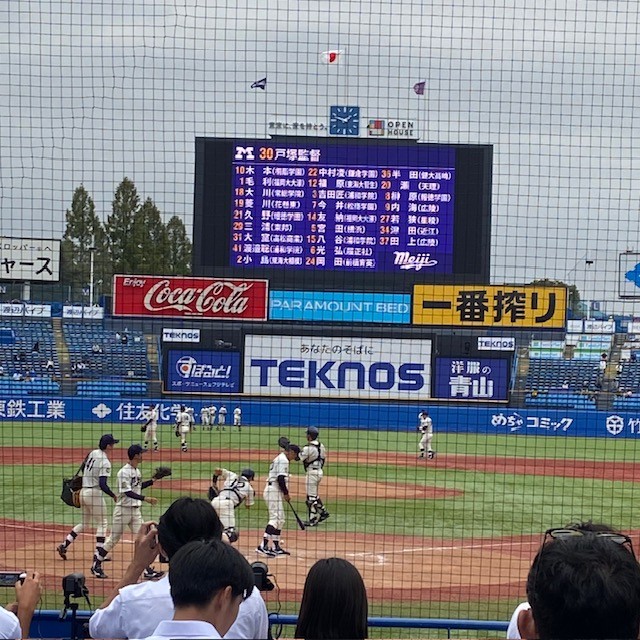 その観戦をバックネット裏から、ハラハラドキドキ。。。早稲田を破れば、まさかの5期ぶりの秋季大会優勝🏆